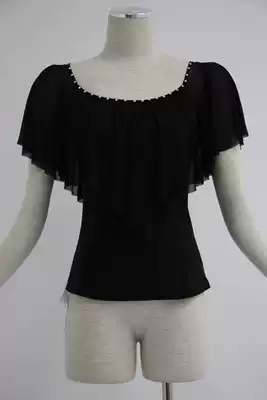 Rose dance 99 black round neck ruffle sleeve shawl fake two-piece modern friendship square dance practice suit top female