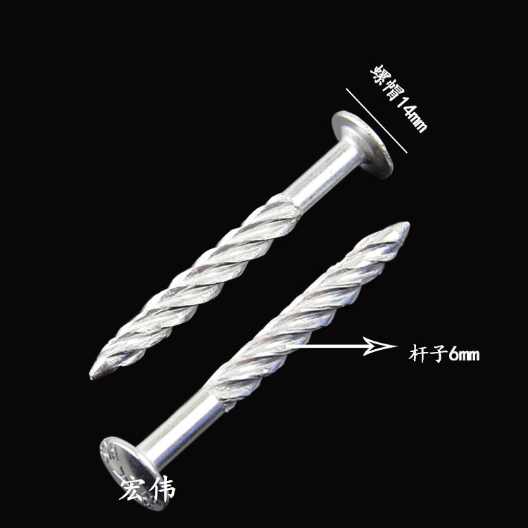 304 stainless steel threaded nail wide solid thread nail galvanized threaded nail M8 steel nail threaded stud implogging cement nail