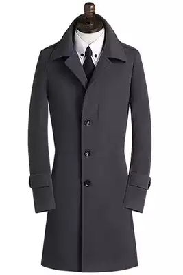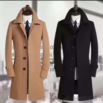 Long version of men's autumn and winter cashmere coat single-breasted Korean version of slim windbreaker windproof and warm medium and long version of woolen coat