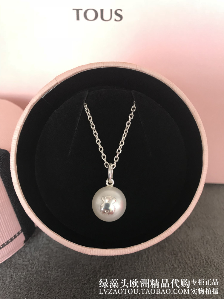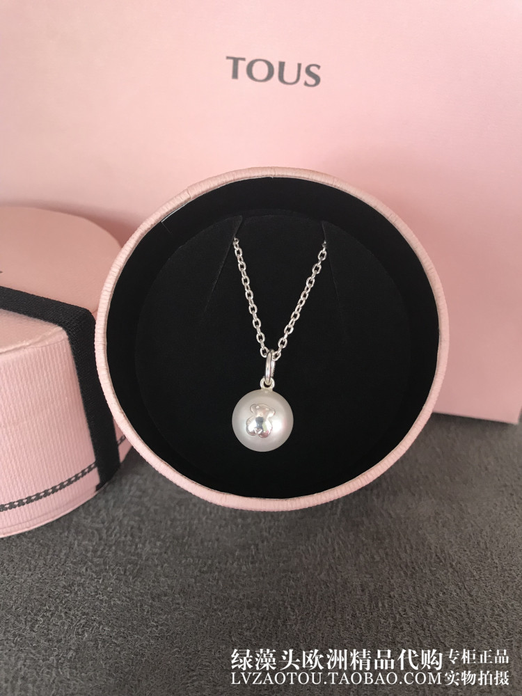 Spot Spain TOUS Peach Silk Bear Classic brief about 100 hitch a small bear natural pearl 925 pure silver necklace woman