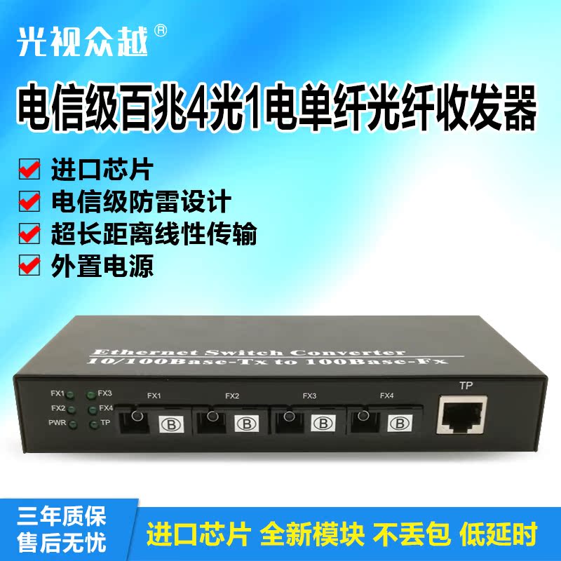 100 trillion Convergent fiber transceiver 4 light 1 electric single-mode single fiber optical fiber switch multi-optical outlet single-electric photoelectric conversion-Taobao