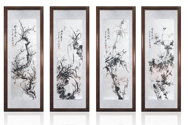 National Painting Flower Bird Painting Composition Four United Meranju Bamboo Pure Hand Painted Real Handwriting and Manuscript Living Room Office Feng Shui Hang Painting