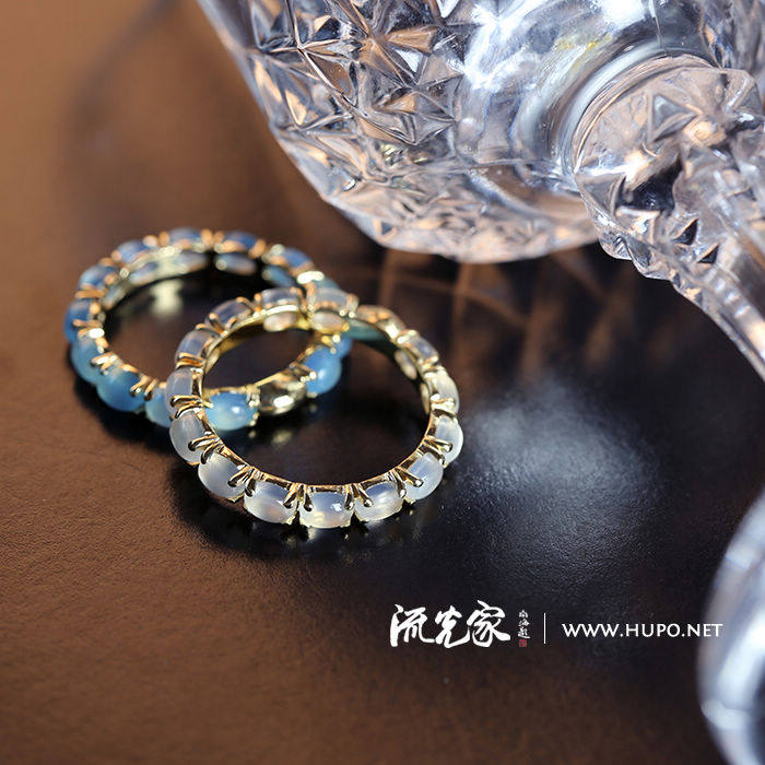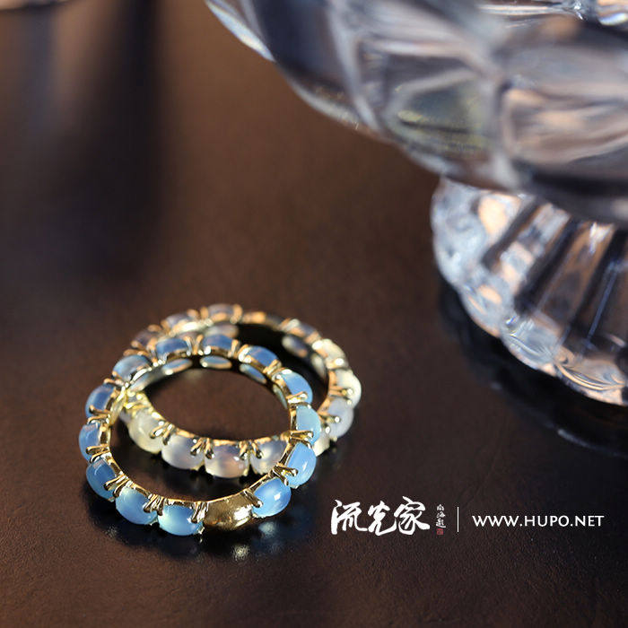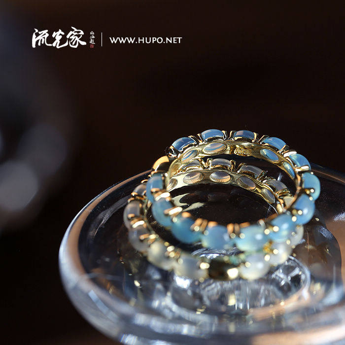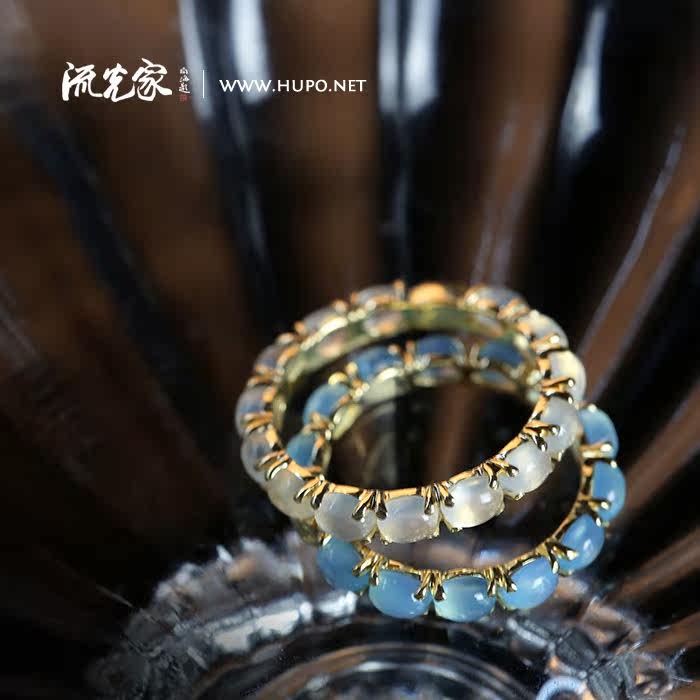 Flow home High quality natural blue jade marrow white jade marrow 18K gold ring ring made in Italy