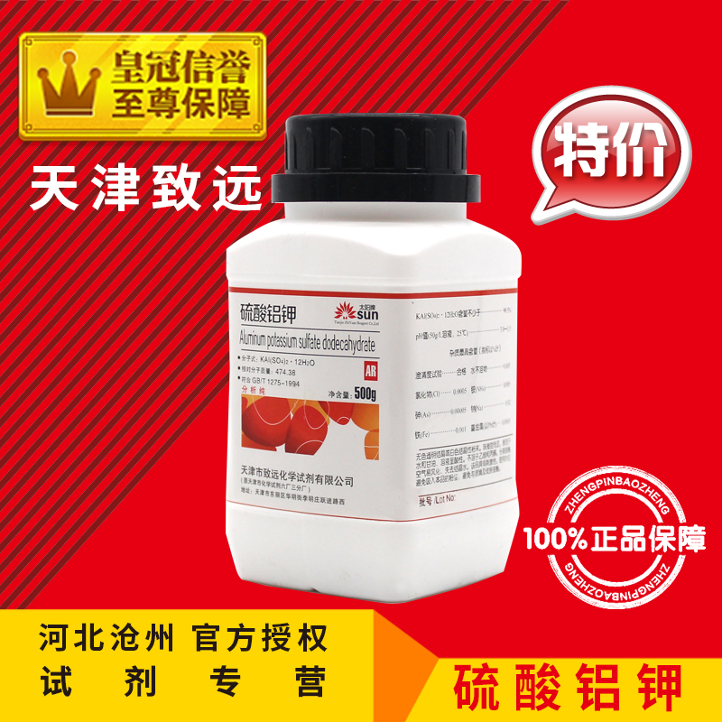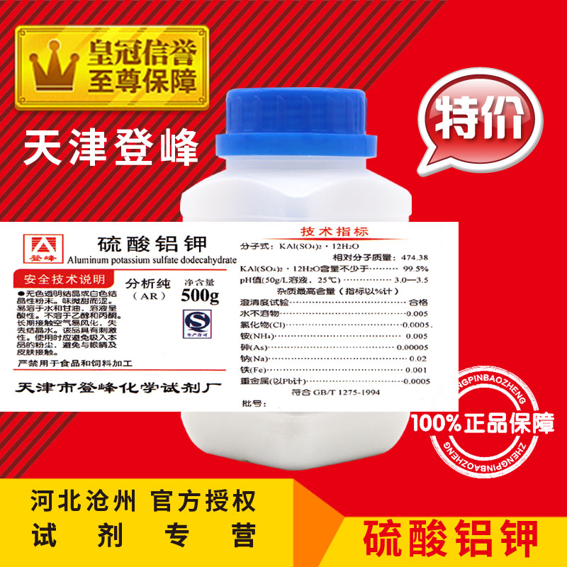 Potassium Aluminium Potassium AR500g Alum Analysis Pure White Alum Chemical Reagent Potassium Alum Chemicals Raw Materials Crystallization Experiment