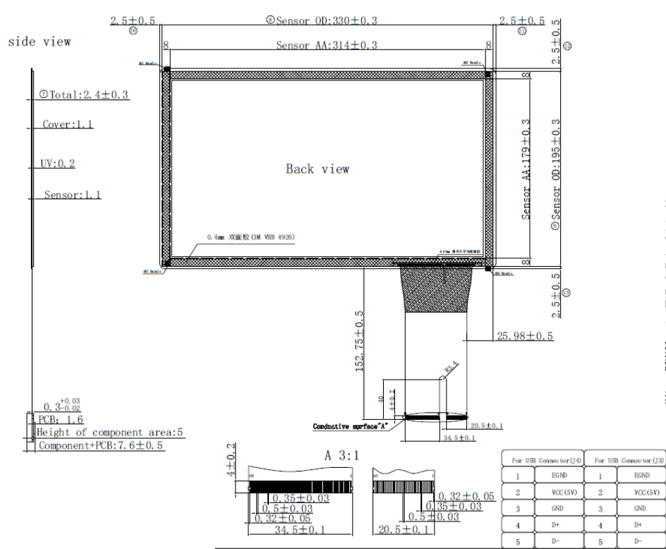 14 inch (16:9) capacitive touch screen 10 point large size capacitive industrial control touch screen