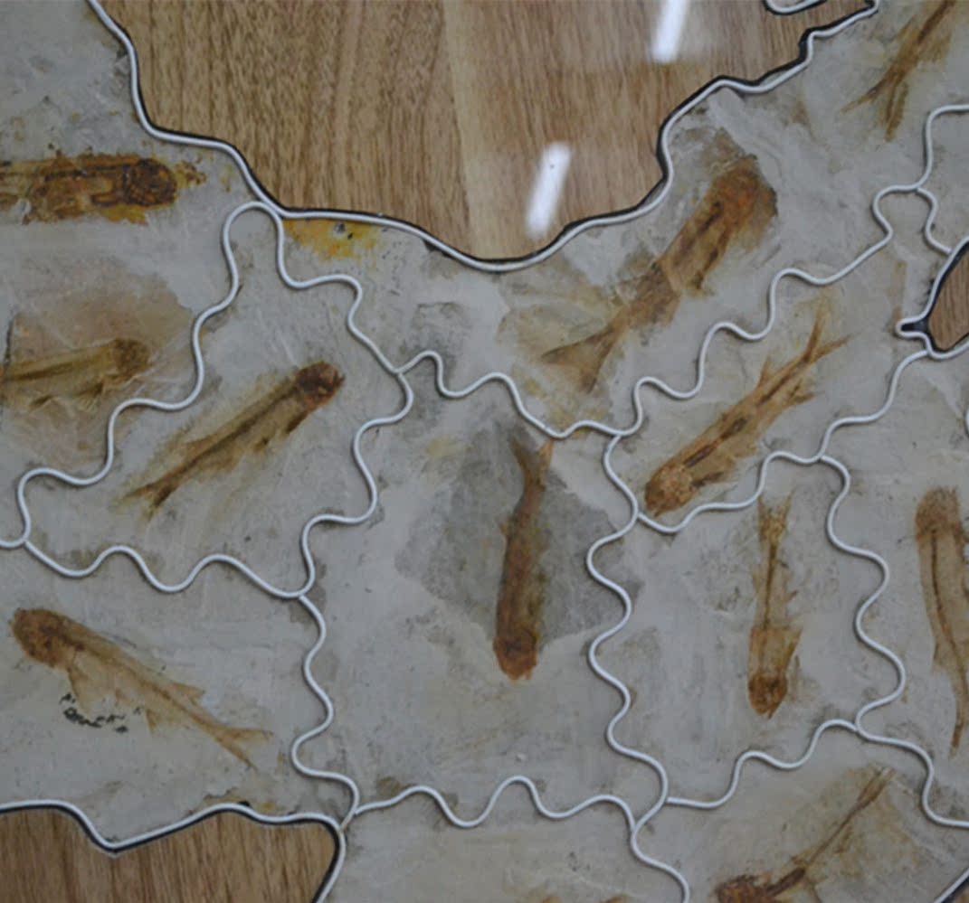 Boutique Liaoxi Chaoyang Ancient Bio Fish Fossil Specimen Process Jigsaw Puzzle Fine Mount Gift Jiao Pine map pendant