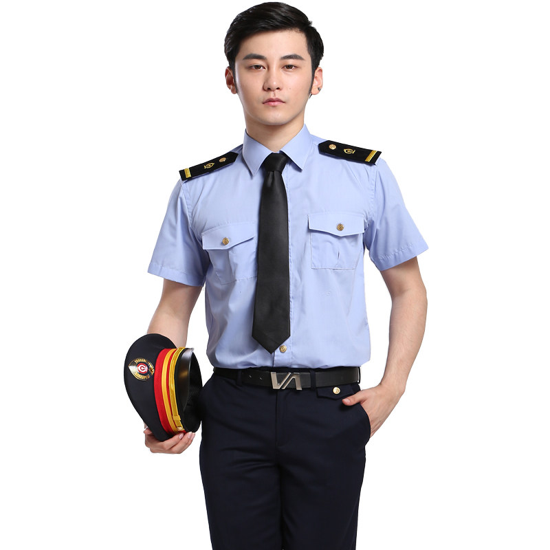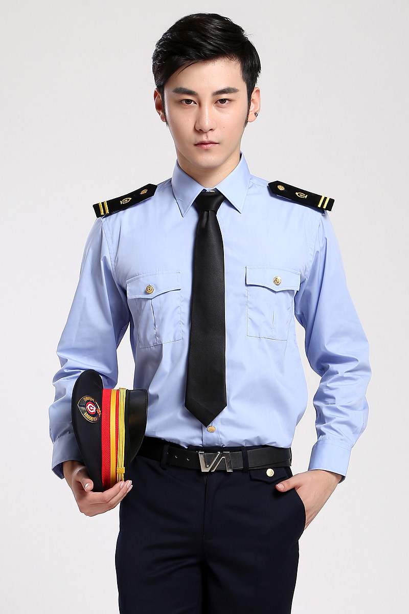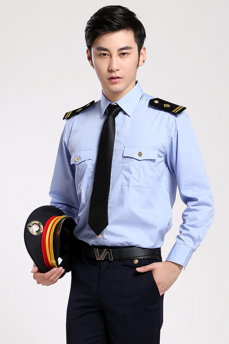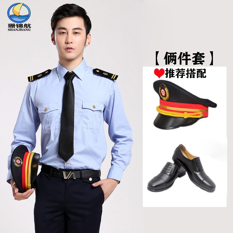 Shan Jinhang spring summer railway work clothes men's railway free of ironing workwear shirts school uniforms flight attendants Long sleeves shirt blue