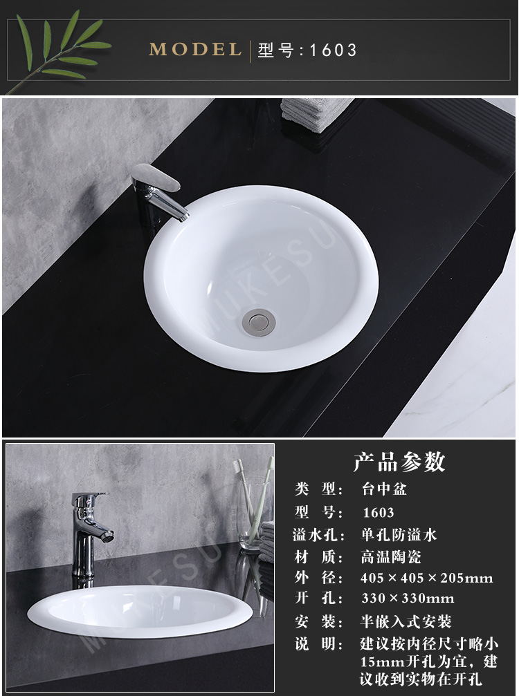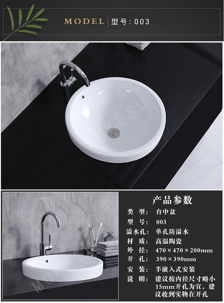 Pure round washbasin Taichung basin Semi-embedded washbasin Ceramic basin Oval table basin Under-table basin