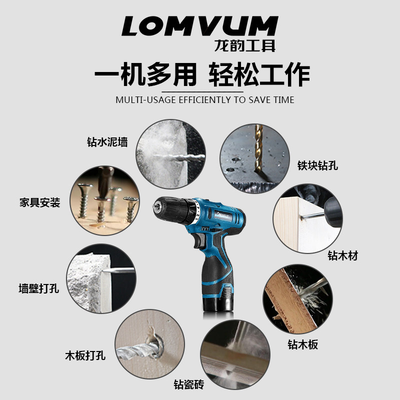 LongYun electric drill rechargeable hand drill pistol drill multi-functional household power tool screwdriver electric to official flagship store