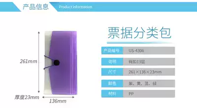 Yuansheng US-4306 bill package 13-layer bill classification package multi-card file classification package separated page Yuansheng stationery