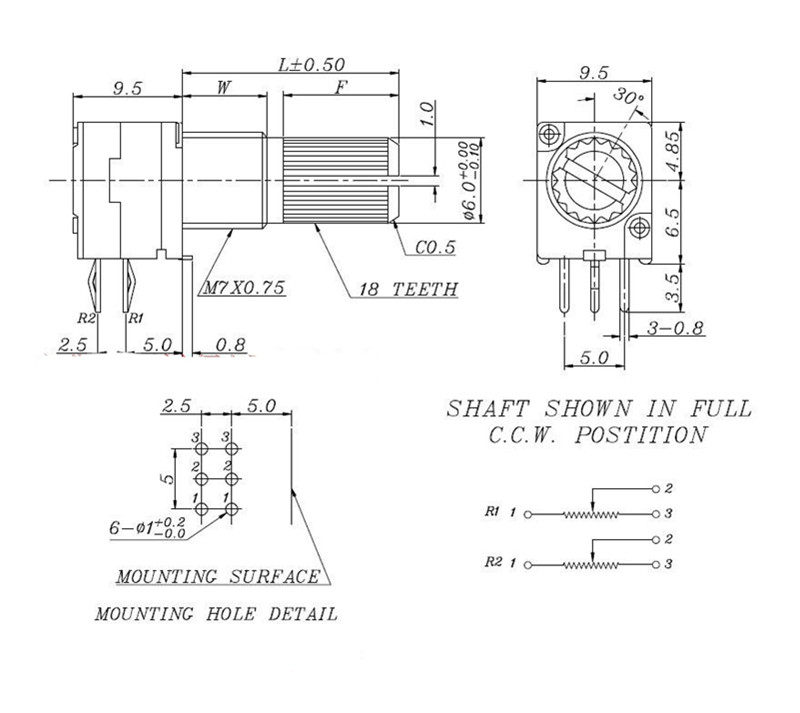 097 duplex potentiometer B10K B20K B50K B100K advanced car audio precision volume potentiometer
