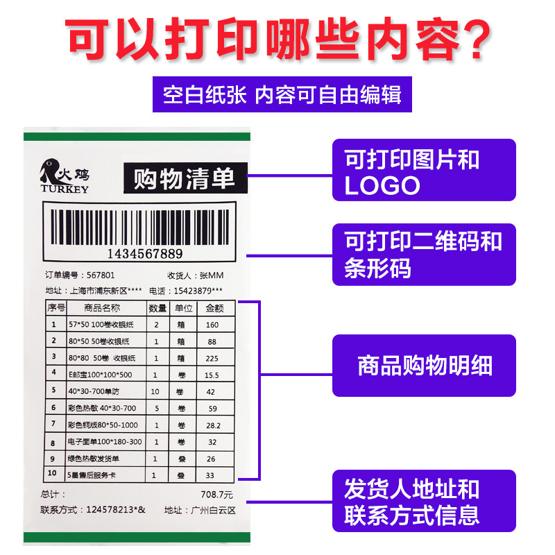 Turkey thermal paper invoice copy paper E-commerce purchase list Taobao warehouse delivery list Black calibration thermal paper invoice electronic face single Express list copy paper Taobao invoice