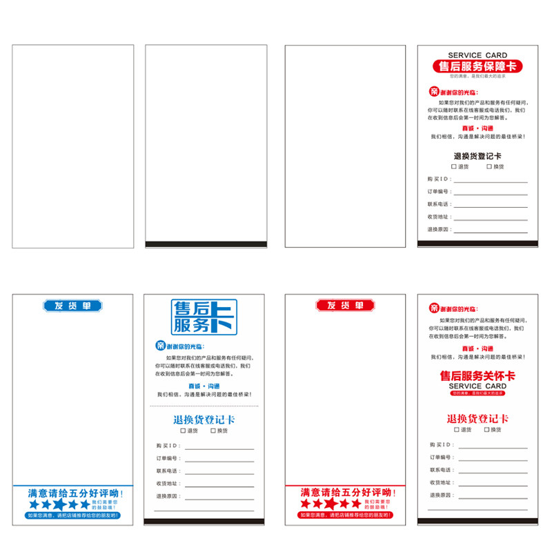 77*133 35-1000 sheets (blank) 77*133 35-1000 sheets (after-sales card) (blank B) 106*177 8-1
