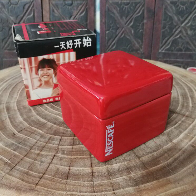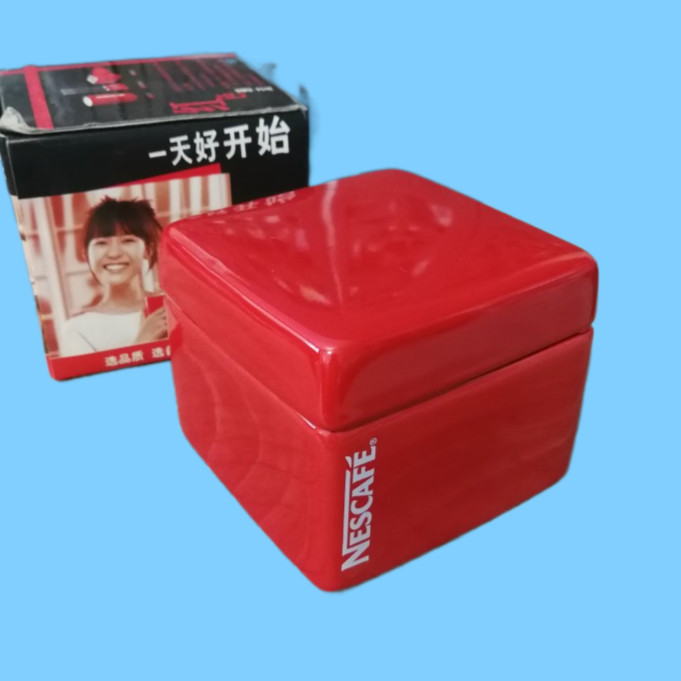 Nestlé themed collection of sugar cans in 2004 square cans Nestlé limited edition of Nestlé red cup matching