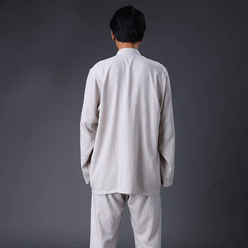 Chenjiagou Flax Tai Chi Dress Men's Long Sleeve Gastrodia elata Middle-aged Tai Chi Dress Cotton and Hemp Practice Dress Spring and Autumn