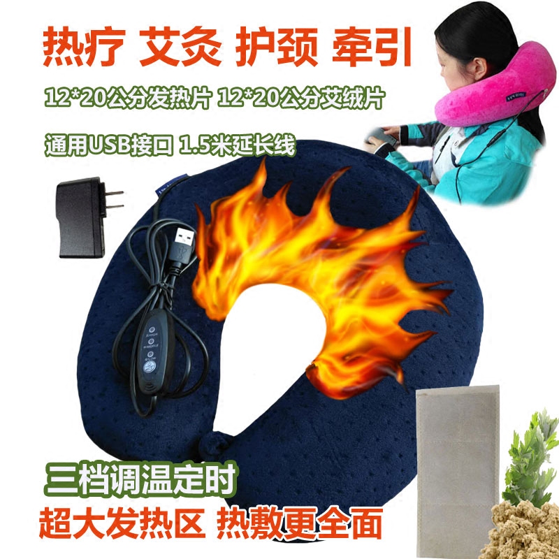 u type pillow moxibustion pillow cervical spine pillow protection neck pillow office nap pillow health care pillow driving USB electric heating pillow winter