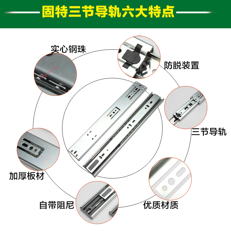 Gute drawer three-section track thickened computer keyboard bracket side-mounted buffer damping furniture clothing overall cabinet roller