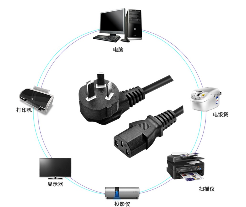 National standard desktop computer mainframe box display projector rice cooker pot electric kettle product word three-hole power cord copper