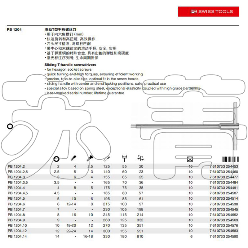 Original imported SWISS PB SWISS TOOLS Allen wrench T bar slider PB 1204 series