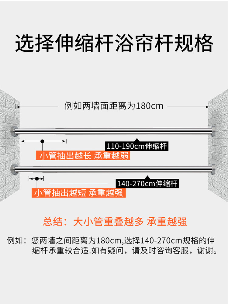 Powder room punch rod Shower curtain rod Bathroom clothes drying rod Shower curtain curtain rod Stainless steel telescopic rod Straight rod balcony
