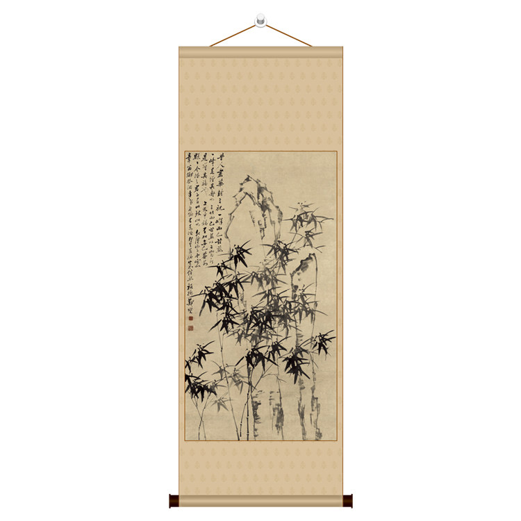 Bamboo Stone Five - foot canvas on the vertical shaft of antique bamboo soft frame home painting country painting, Zheng Panqiao