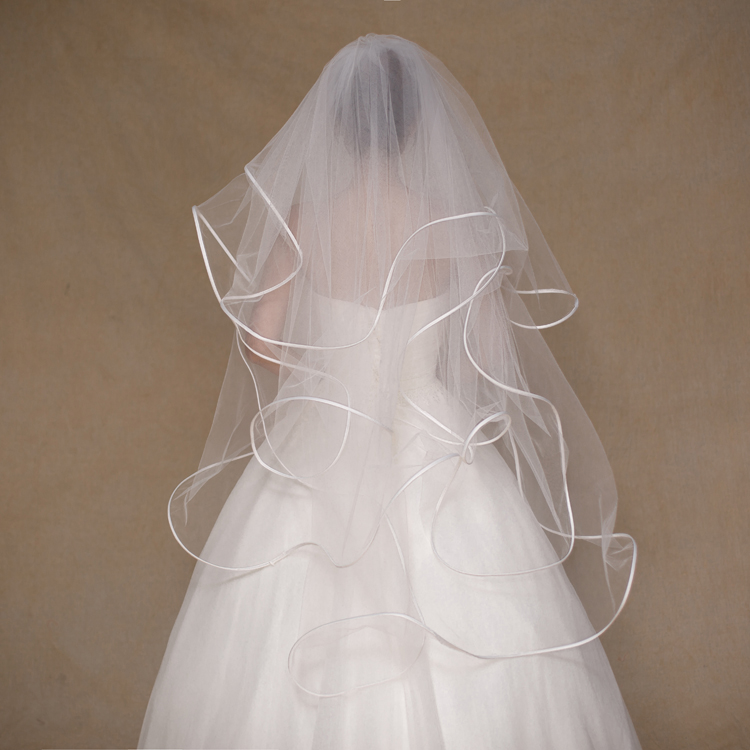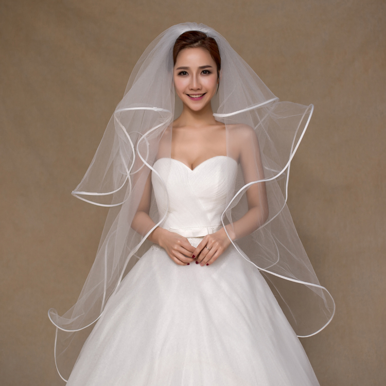 Wedding veil modeling yarn Bridal veil 1 meter four-layer puffy princess veil multi-layer satin edging