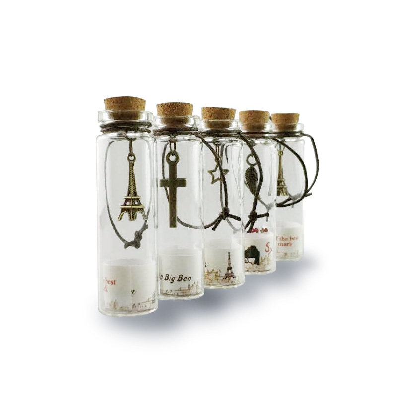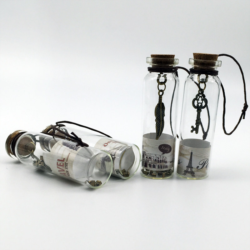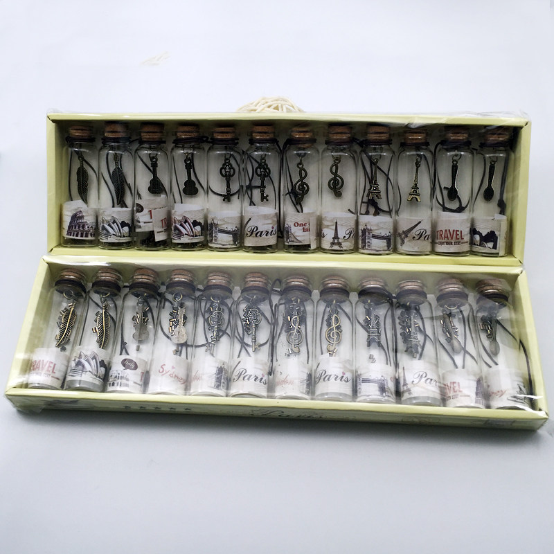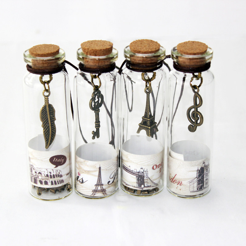 Set of 12 stylish vintage metal charm wishing bottle gift wooden stopper Glass bottle creative birthday gift