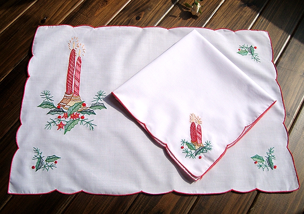 Foreign trade T C blended exquisite embroidery retro country fabric placemats dish mats napkins 2-piece set Candlelight series value
