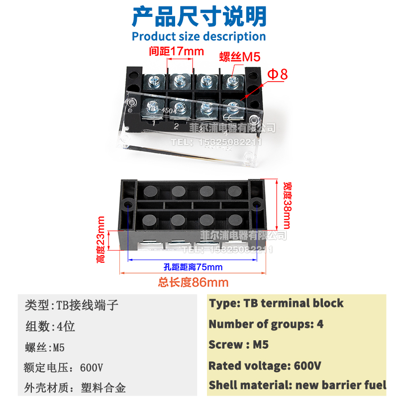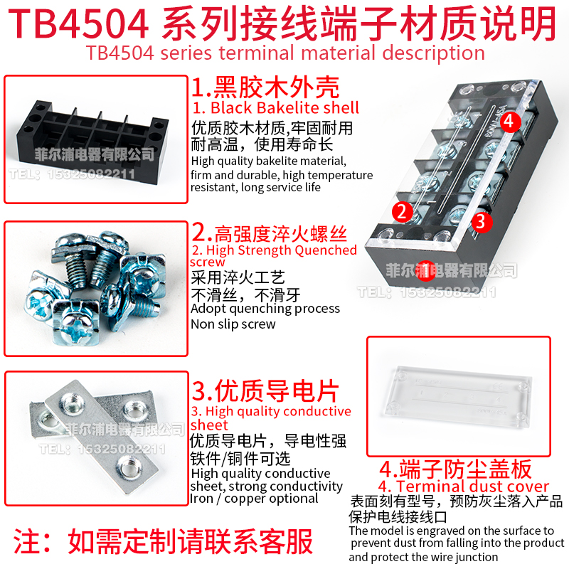 Manufacturer direct sales TB4504L wiring end subtable stationary tb bar 45A 4 bits end subtable 50 only fit