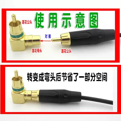 Pure copper gold-plated Lotus RCA male-to-female conversion head AV Lotus audio line male and female adapter L-shaped elbow
