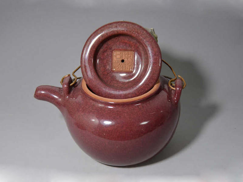 Qing Dynasty Lejinshi Yixing old purple sand pot 390cc purple sand tire color glaze egg bag carrying beam grass green indigo blue rose purple