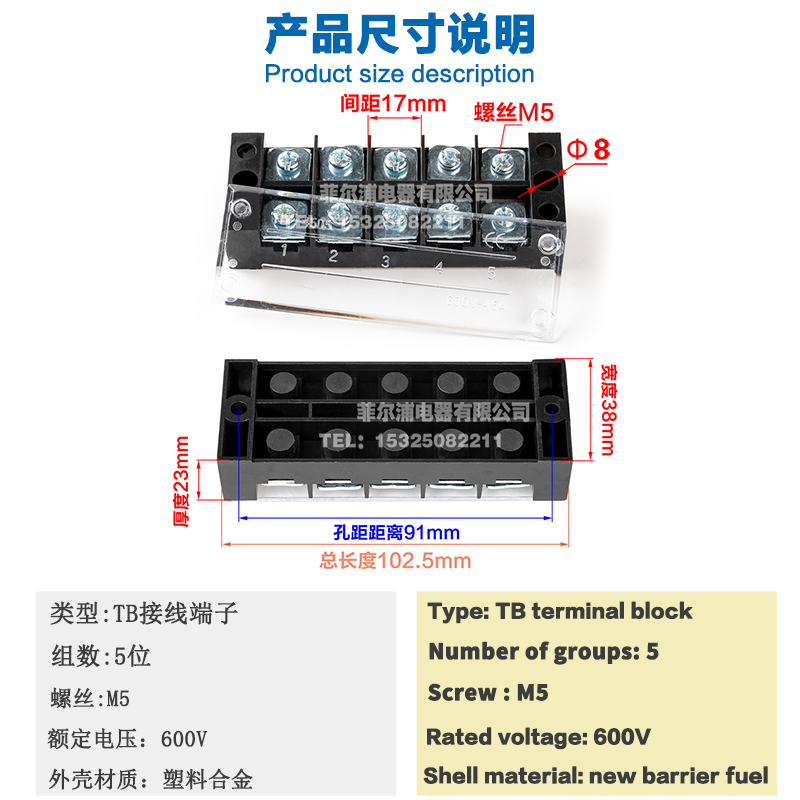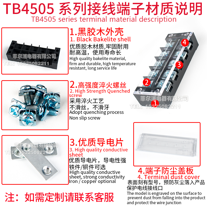 Factory direct TB4505L terminal block fixed tb strip 45A 5-position terminal block 40pcs