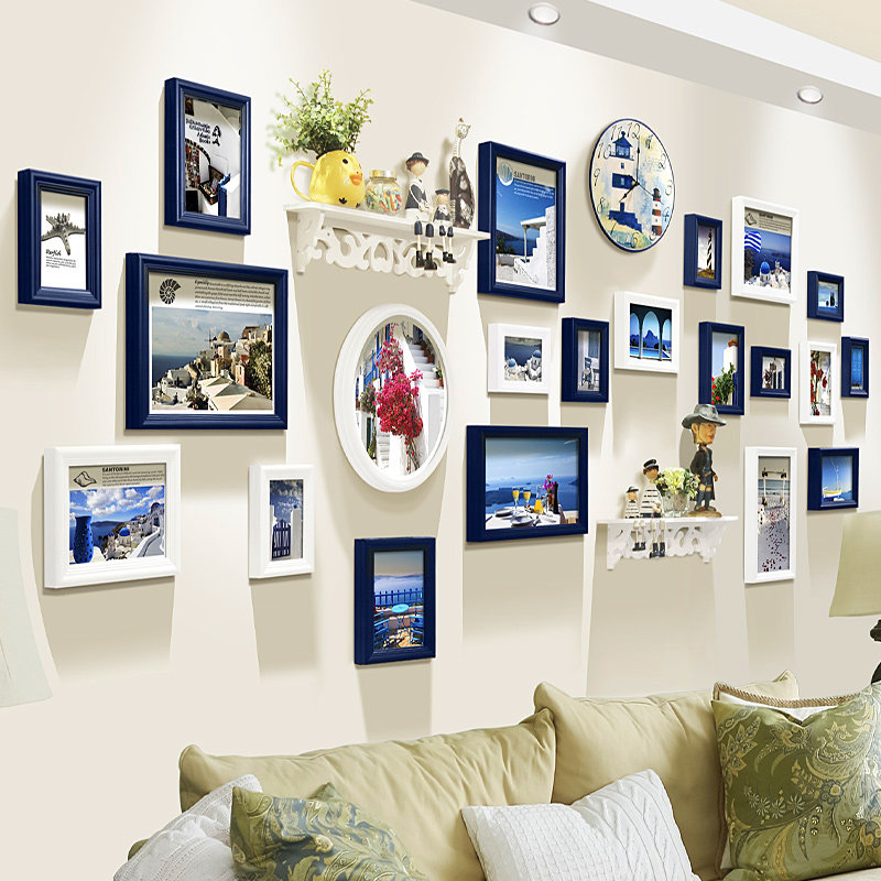 Black and white frame (European-style fascination) (support to wash photos) Blue and white beard (interpretation of European rhyme) (support to wash photos)