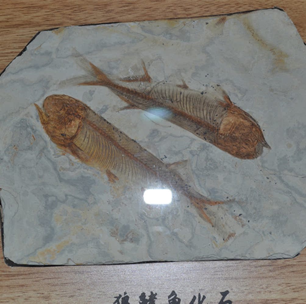 Boutique Liao Xi Chaoyang Ancient Bio Fish Fossil Send Gift Canon Solid Wood Pendulum Table Original Stone Specimen Sole Plate Double Fish
