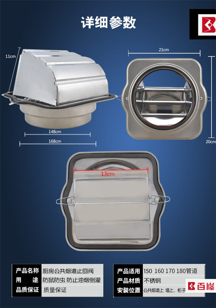 Shixing Bailong diversion stainless steel public kitchen flue range hood check valve check valve fire check valve