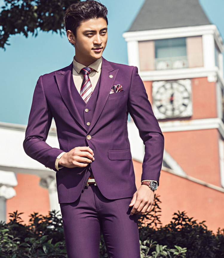 Photo studio theme men's purple suit stage performance men's dress suit three-piece host costume photo shoot