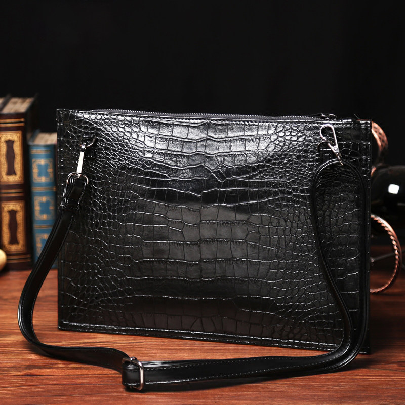 Trendy new hand grab bag men Crocodile print hand bag Single shoulder inclined satchel handbag Handbag Letter Enveloping File Bag Tide