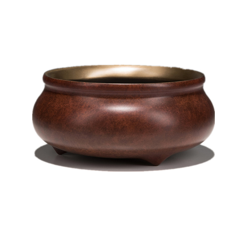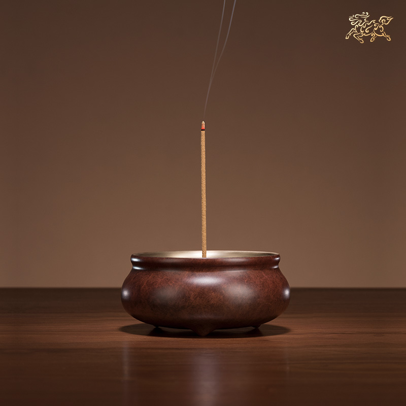 Copper master all copper incense burner three-legged flat round line incense burner all copper hand burner incense dish incense burner incense burner incense smoker home room
