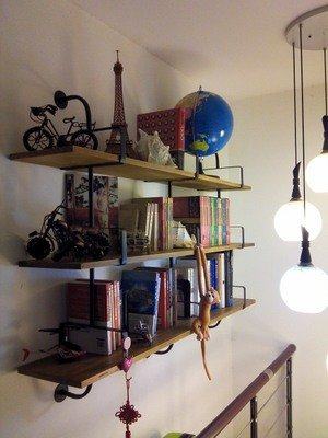Wall Shelf Wall-mounted Bookshelf Solid Wood Creative Wall Cabinet Laminate Lined Separator Iron Art Bracket Industrial Wind Bookcase
