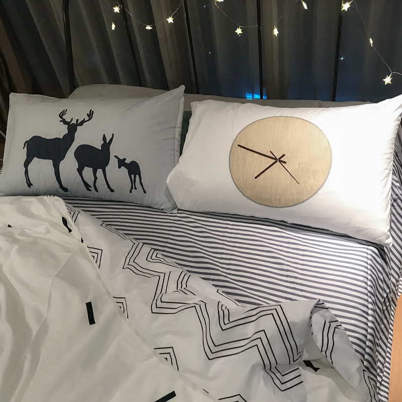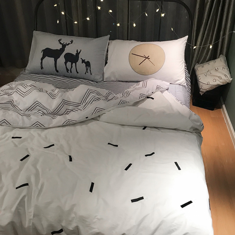 Nordic Wind Freshener Brief All Cotton Four Pieces Of Grey White Pure Cotton Bed Bedding Striped Bed Product Quilt Cover Bed Bamboo Hat