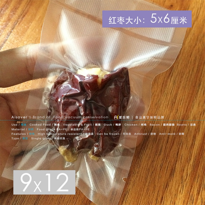 9 * 12 red date clip walnut vacuum bag food single-sided grain food grade transparent packaging packing bag 100