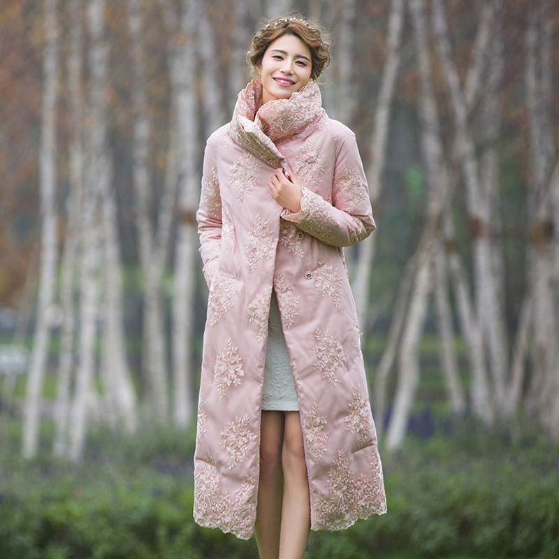 Princess Down jacket 2021 new winter dress Korean version Down coat High collar inserts Shoulder Sleeves Embroidery Thicken long version Brand Female