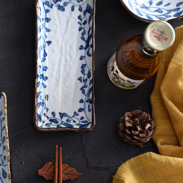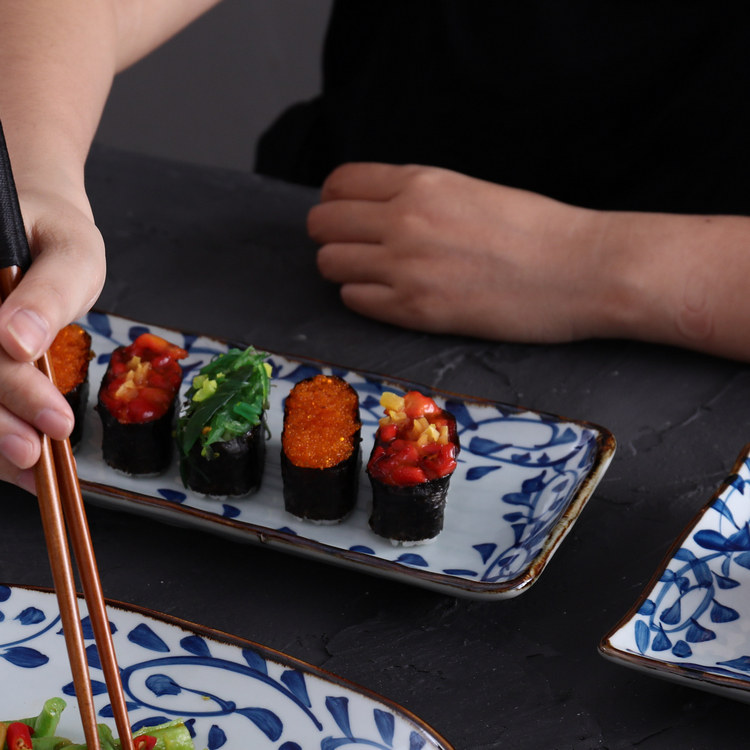 A Japanese dessert plate Rounded rectangular plate Hand-painted plate Sushi long plate Cake plate Long plate