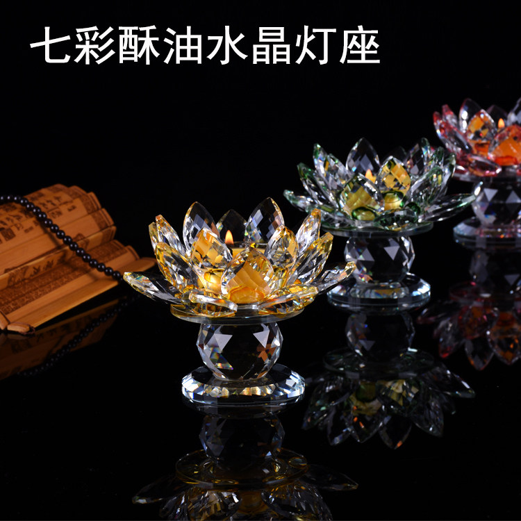 Crystal glass lotus crisp oil lamp holder for lamp table Buddha Hall for use with candle lamp table Seven color lotus seat