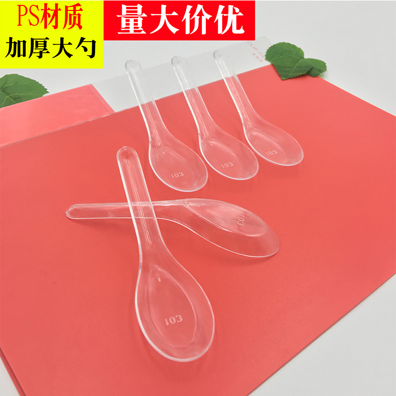 Disposable spoon plastic transparent ice powder soup spoon commercial s103 thickened crystal spoon takeaway tableware small spoon spoon spoon