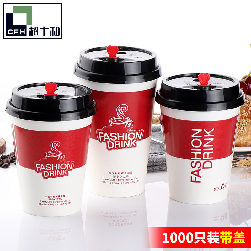 Disposable milk tea coffee paper cup commercial with lid 500ml700 hot drink soy milk take-away packaged cups 1000