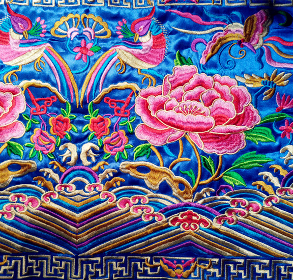 Long blue bottom machine embroidery embroidery large flower pieces accessories National style embroidery DIY embroidery cloth accessories C_6#