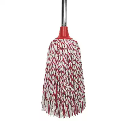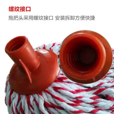 Red and white cotton yarn mop round cotton thread mop stainless steel hand Rod cotton tow water drag vintage home Mop Mop