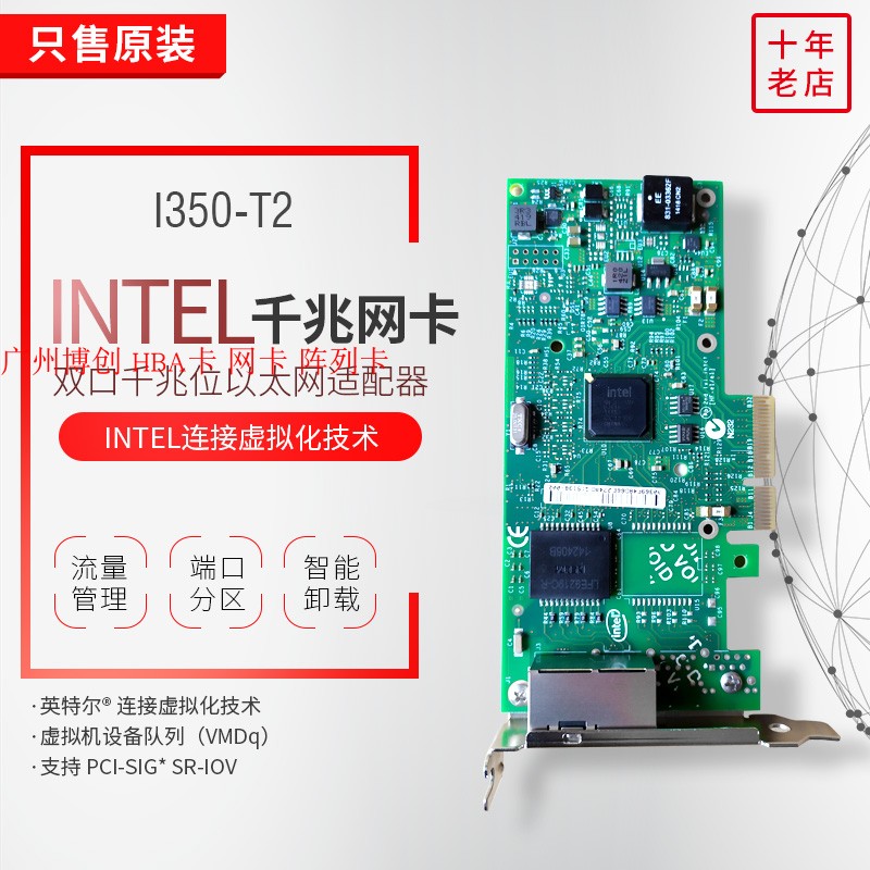 Intel I350T2 Dual-mouth one thousand trillion PCIE Network Card I350T2BLK I350T2V2 original dress with Label-Taobao