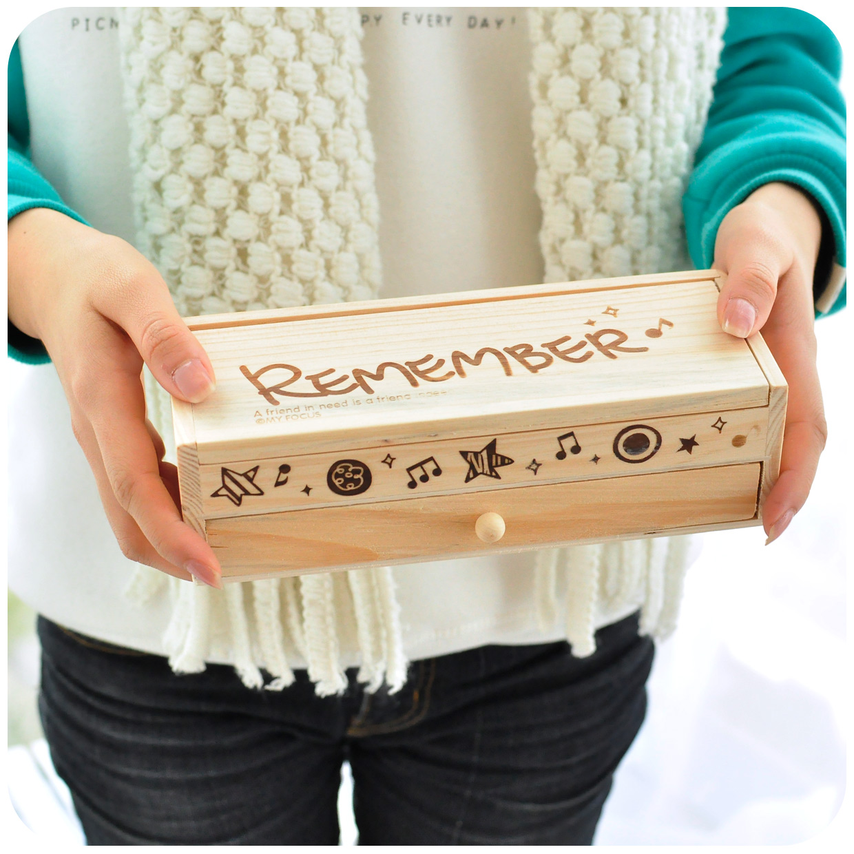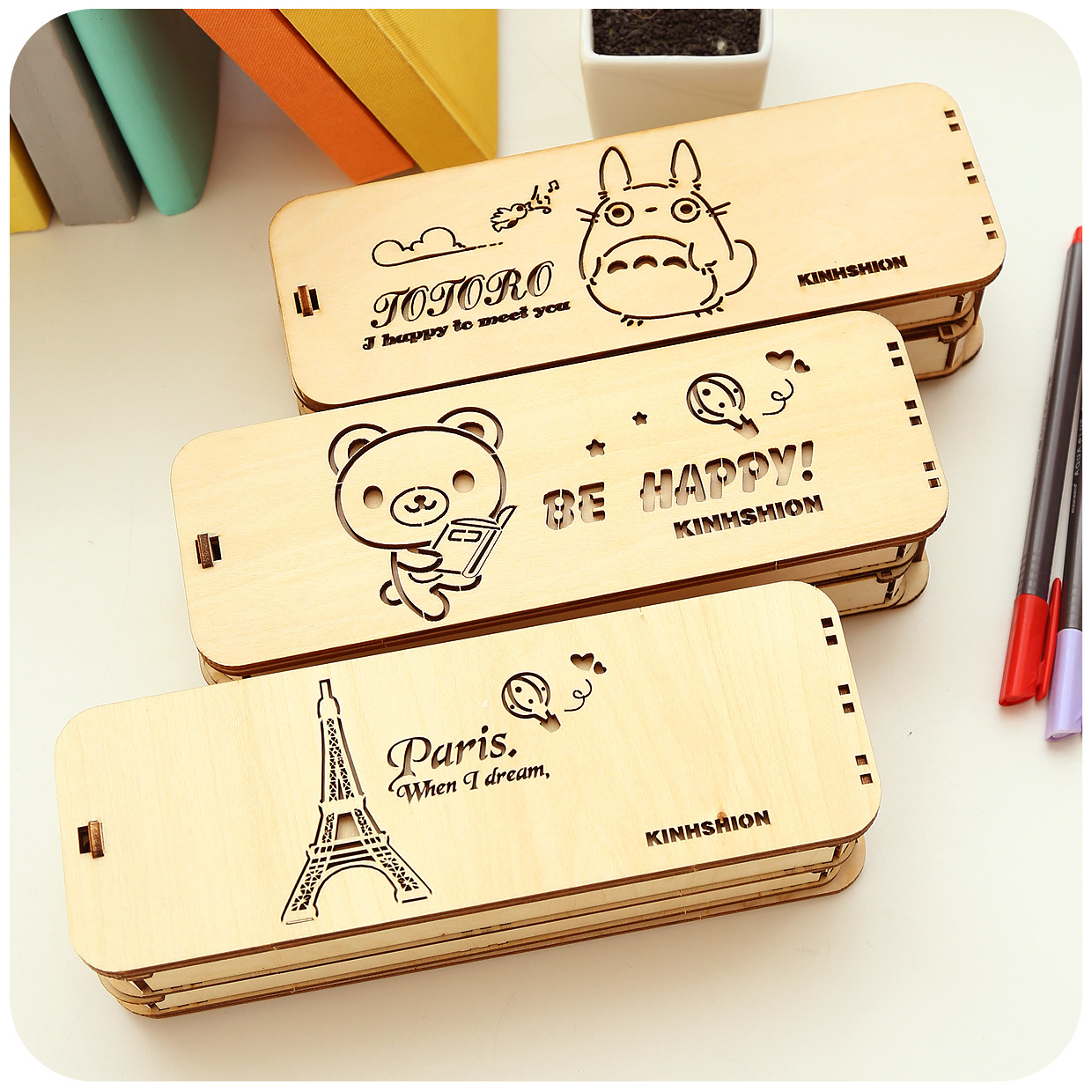 Creative elementary school children boy and girl wooden pencil box Japan Korea multi - function stationery box pencil bag learning supplies